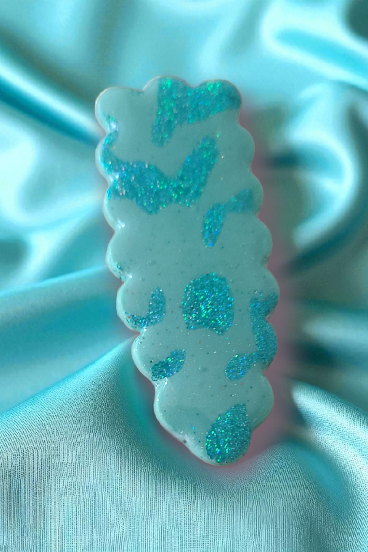 Pince à cheveux vague turquoise pailletée – Fait main en pâte polymère