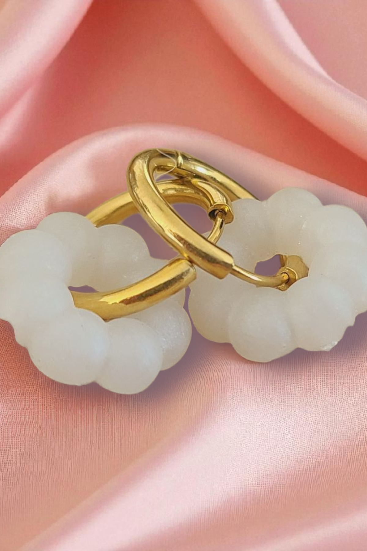 Boucles/Pampilles Primerose Blanche Nacrée – Un pétale de douceur pour vos oreilles