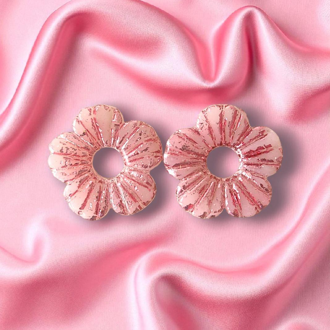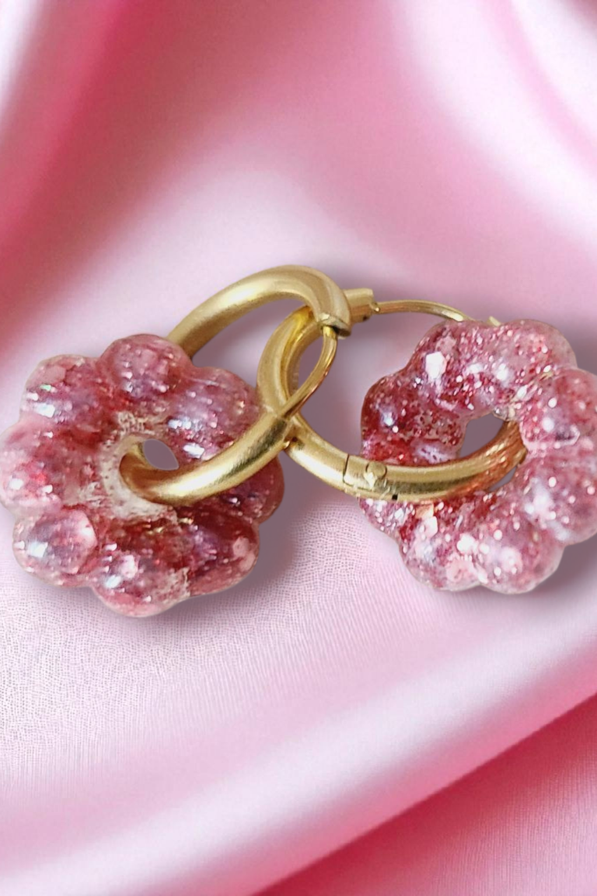 Boucles/Pampilles Poppy fleur rose scintillante – Élégance féminine