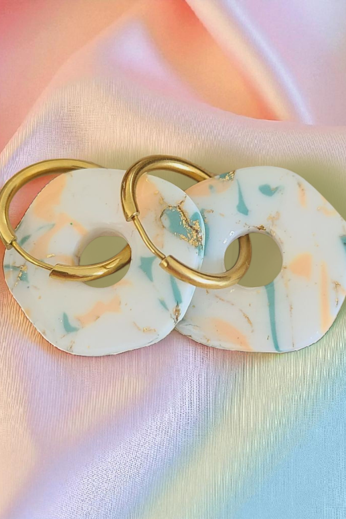Boucles/Pampilles seules Galéa – Marbrage Pastel Blanc, Menthe & Pêche – Fait Main Chic 8,00 € Ajouter