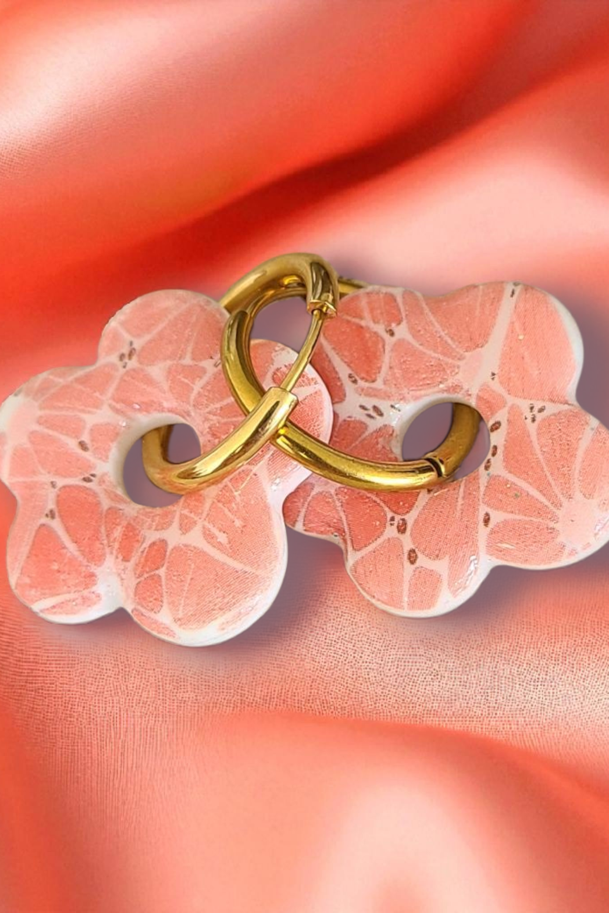Boucles/Pampilles seules Cora - motif transfert fleur rose - fait main- Édition limitée 8,00 € Ajouter