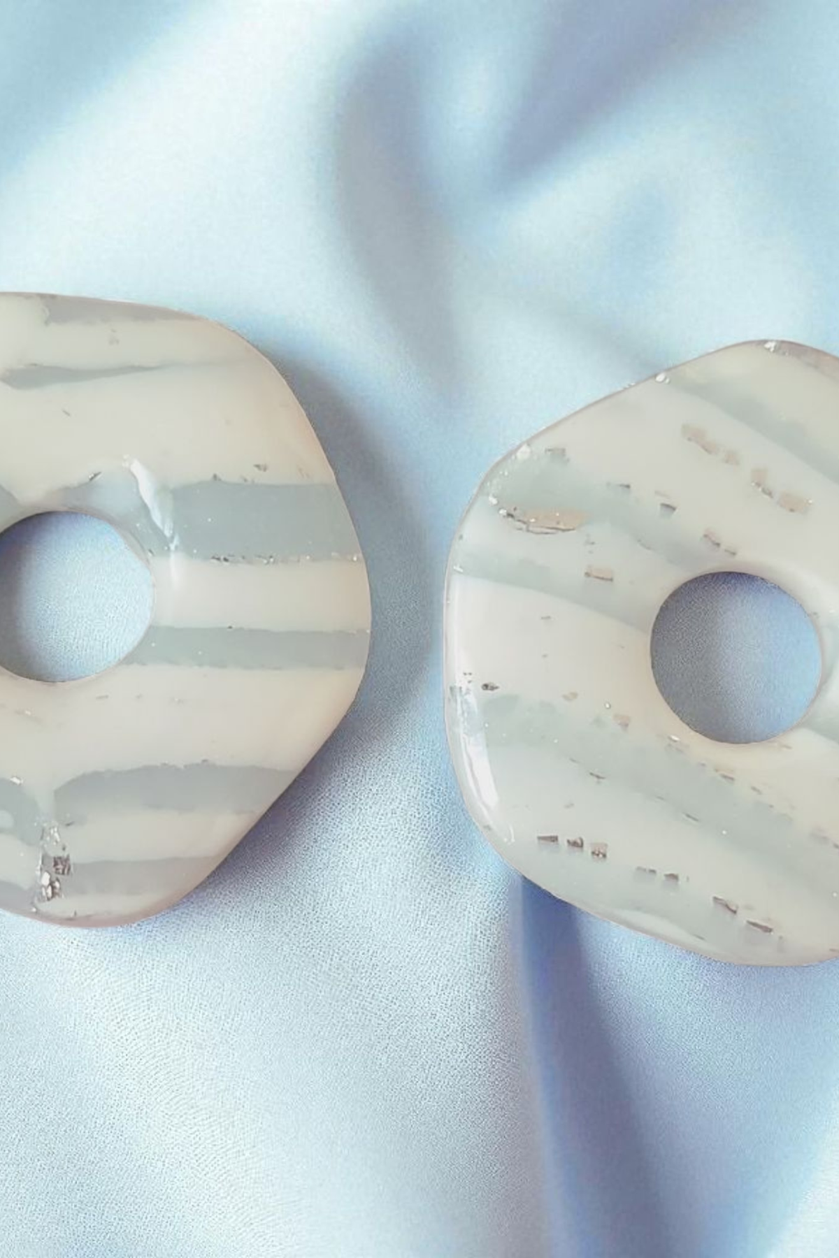 Boucles/Pampilles Galéa seules – Rayures Blanc, Bleu Pâle & Argent – Fait Main, Douceur Chic 8,00 € Ajouter